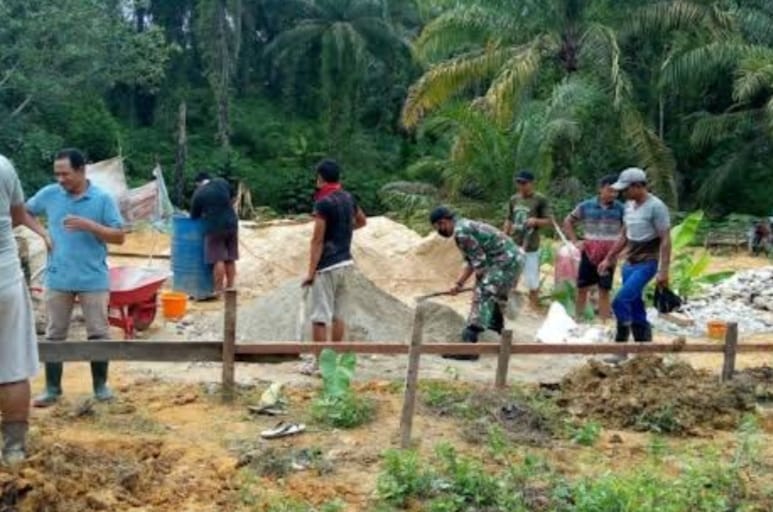 Pada kesempatan itu Serda Bendi M.J, mengatakan Kita sebagai Babinsa tentunya terpanggil hatinya untuk membantu warga binaan mengingat saat ini Desa Bukit Panjang belum memiliki balai pertemuan dan sesuai kesepakatan bersama maka hari ini kita laksanakan pembuatan balai pertemuan yang dilakukan secara bergotong royong,” tutur Babinsa.
