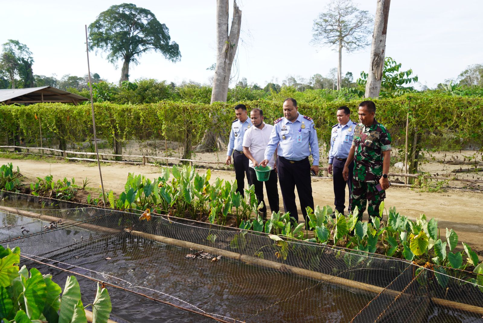 Dalam akhir kunjungannya, Kepala Kantor Imigrasi Meulaboh Bapak Fauzi berkesempatan meninjau langsung berbagai tanaman, ternak ikan lele, sapi, dan komoditas lainnya di Lahan Food Estate Korem 012/TU.