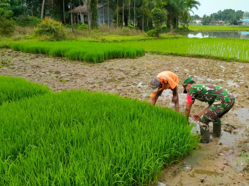 Lebih lanjut Koptu Bambang mengatakan, kegiatan ini merupakan pendampingan kepada petani didesa dengan turun kesawah memantau perkembangan secara langsung pertumbuhan bibit padi yang akan di tanam.