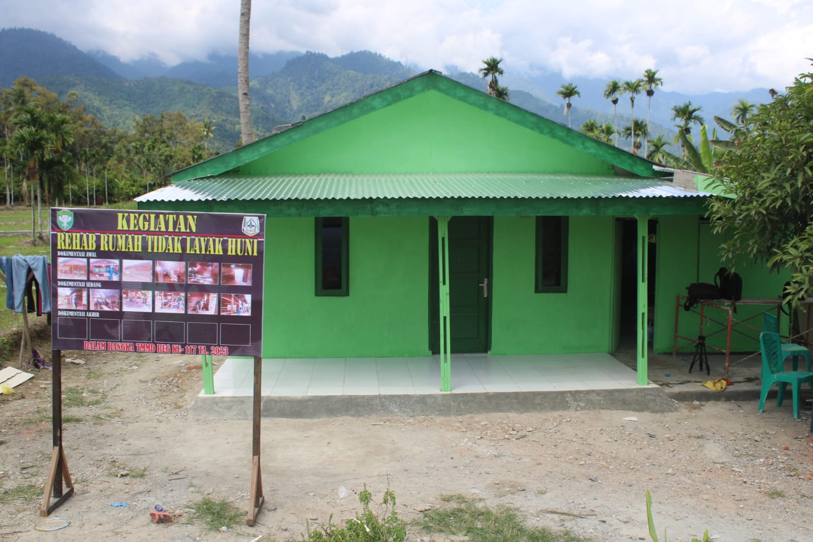 Kutacane – Pengerjaan RTLH oleh satgas TMMD Reguler Ke – 117 sasaran 1 milik Ibu Siti Nur di desa beriring naru Kecamatan Deleng pokhisen kabupaten aceh Tenggara sesuai dengan rencana sudah mencapai tahap 100 persen, tinggal tahap finishing saja,Sabtu (05/08/23).