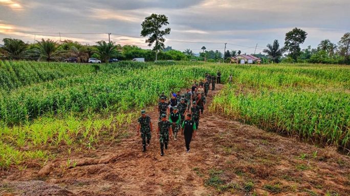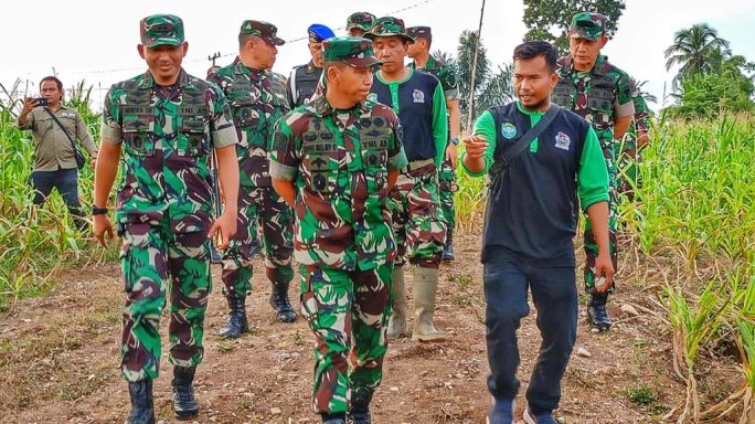 Komandan Kodim 0103/Aut, Letkol Inf Hendrasari Nurhono, S.I.P, M.I.P, dampingi Pangdam Iskandar Muda, Mayjen TNI Novi Helmy Prasetya, S.I.P, M.I.P, beserta rombongan, tinjau lahan I’M Jagong, di Desa Ulee Geudong, Kec. Sawang, Kab. Aceh Utara, Kamis(10/08/2023).