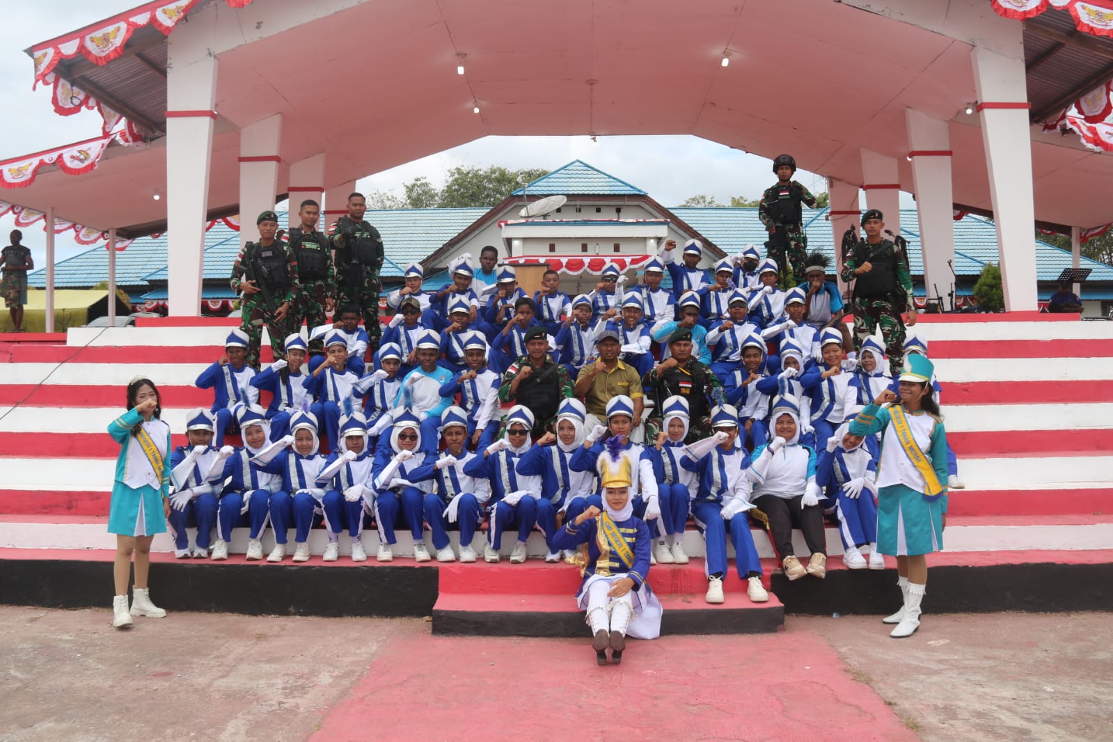 Boven Digoel, *”Kitorang Basudara*” Satgas Pamtas RI – PNG Yonif RK 111/KB yang saat ini bertugas mengamankan Perbatasan RI-PNG dan 14 Patok Batas ikut serta dalam mensukseskan HUT RI ke 78 di Kabupaten Boven Digoel Papua Selatan, Rabu (16/08/2023)