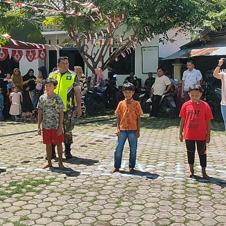 Pidie — Babinsa Koramil 09/Mutiara Barat Kodim 0102/Pidie Koptu Baihaki menghadiri sekaligus melaksanakan pengamanan rangkaian acara perlombaan dalam rangka memperingati HUT RI ke-78 tahun 2023 di desa Dayah Tidiek kecamatan Mutiara Barat kabupaten Pidie.Kamis (17/08/2023) sore.