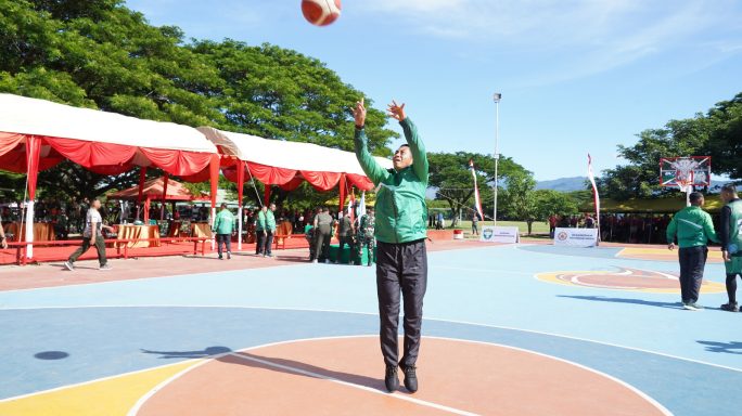 Banda Aceh – Panglima Komando Daerah Militer Iskandar Muda (Pangdam IM) Mayor Jenderal TNI Novi Helmy Prasetya, S.I.P, M.I.P membuka kejuaraan Bola Basket Semarak Kemerdekaan di wilayah Kodam Iskandar Muda tahun 2023, di Lapangan Basket Blang Padang Kota Banda Aceh, Jumat (18/08/23).