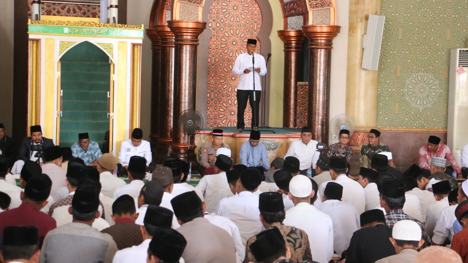 Sekda Aceh Barat, Marhaban SE., M.Si., yang mewakili Pj. Bupati Aceh Barat, menyampaikan rasa kebahagiaan dan kumuliaan atas kesempatan bersilaturahmi dengan Ulama Dayah Kabupaten Aceh Barat dalam acara Mubahatsah Ulama Dayah (Mudab) Akbar dan Istighatsah Kubra. Dalam kesempatan ini, diharapkan terciptanya rekomendasi bermanfaat bagi masyarakat dalam memperkuat syariat Islam khususnya di wilayah Aceh Barat.