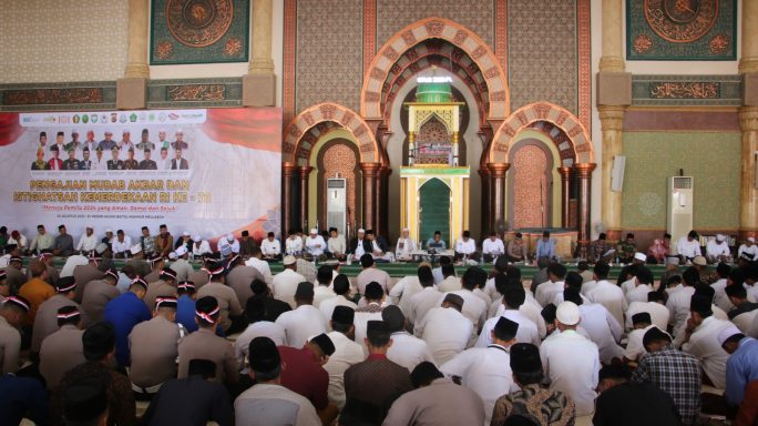 Aceh Barat – Kegiatan Mubahatsah Ulama Dayah Aceh Barat (Mudab) Akbar dan Istighatsah Kubro untuk memperingati HUT RI Ke-78 dilaksanakan di Mesjid Agung Baitul Makmur, Kec. Johan Pahlawan, pada Minggu (20/8/23). Dalam acara tersebut, Komandan Korem 012/TU Kolonel Inf Riyanto, S.I.P., diwakili oleh Kasrem 012/TU Letkol Inf Wijayanto Kusumo Harjono, turut hadir.