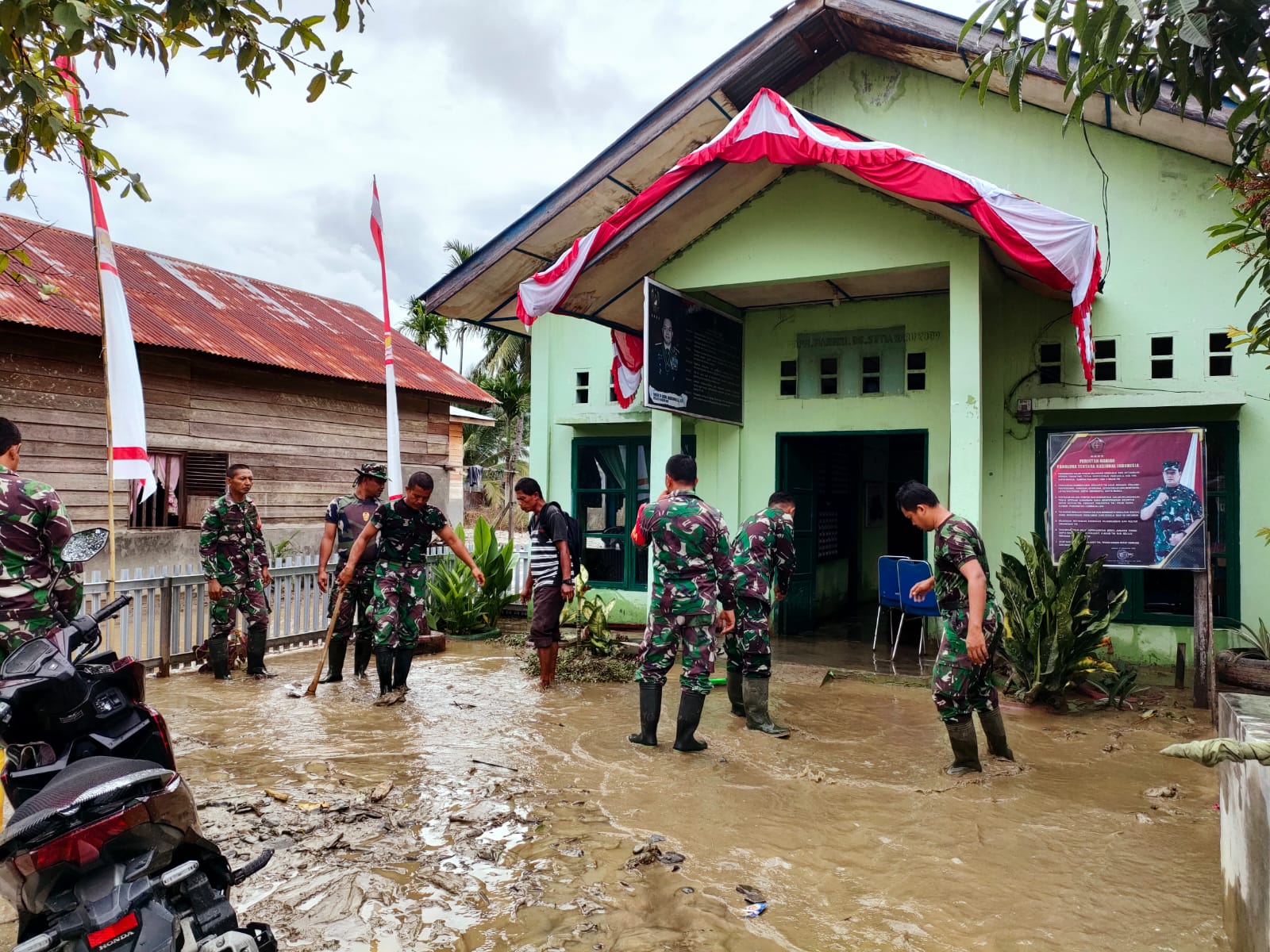 Peltu Sabrizen Pelis Danposramil Lawe Sumur menyampaikan kami sampai saat ini masih siaga dan selalu siap membantu kesulitan warga, terutama dalam membersihkan lumpur bekas banjir, instalasi penting tetap menjadi prioritas utama sasaran kami seperti tempat ibadah sekolah,tempat kesehatan, tambahnya.