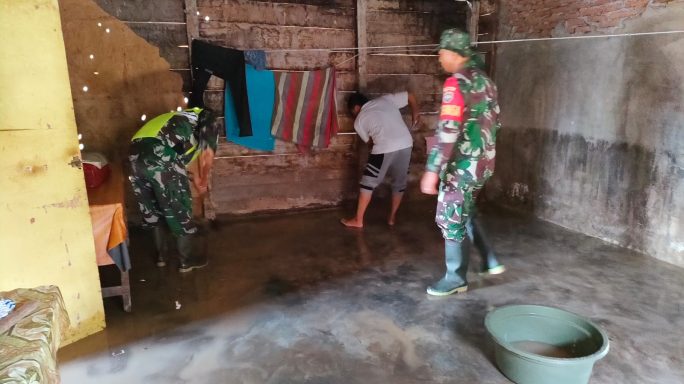 Prajurit Kodim 0108//Agara terus diterjunkan kelokasi bencana berupaya untuk membantu kesulitan masyarakat. Dari saat terjadinya banjir sampai pasca banjir. Seperti pada hari ini para Babinsa membantu membersihkan rumah warga dari bekas banjir yang disebabkan meluapnya sungai lawe tuban pada beberapa hari yang lalu.