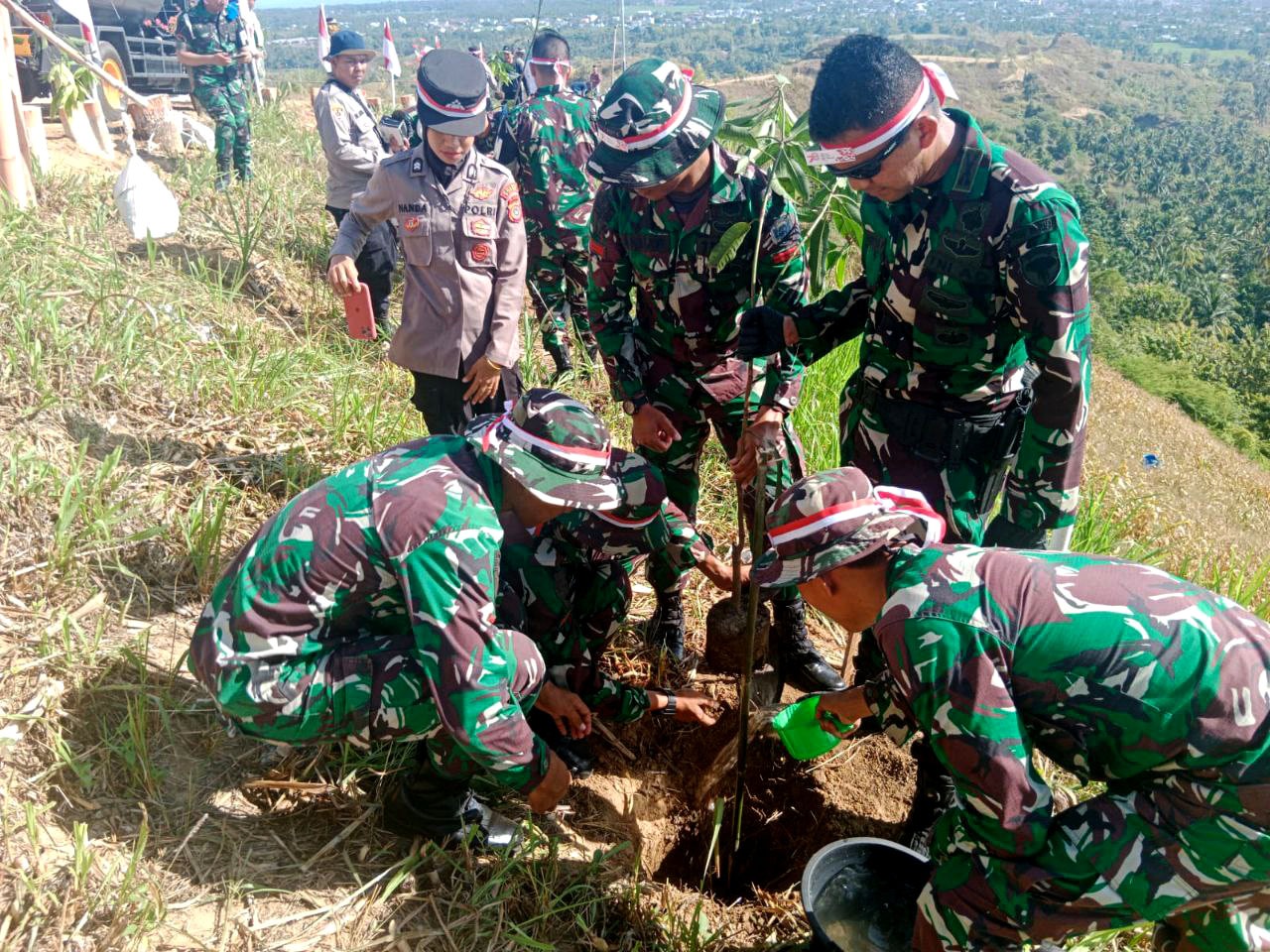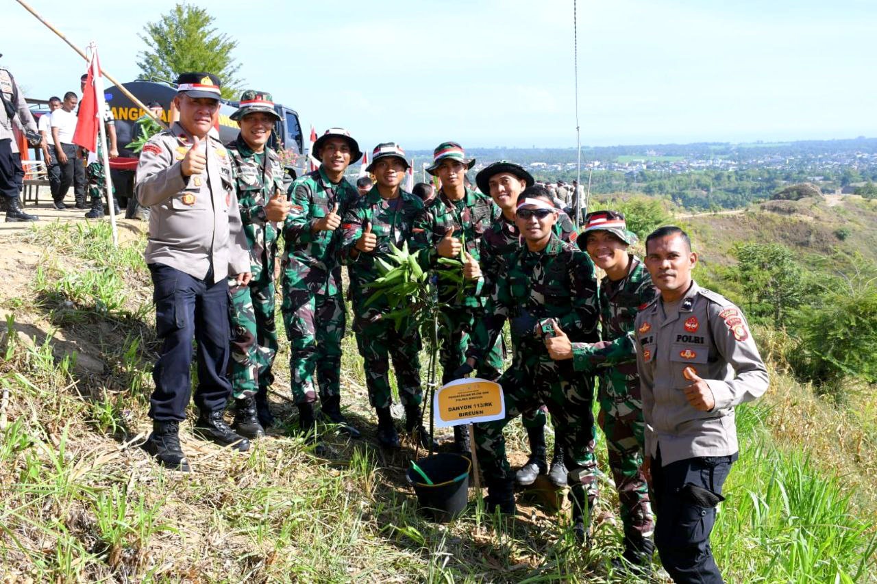 Bireuen – Segenap Prajurit Badak Hitam bersama Jajaran TNI – Polri serta Masyarakat menggelar Aksi Penanaman Pohon dalam rangka menjaga kelestarian Alam, yang berlangsung di puncak Teulaga Mane, Desa Meunasah Gadong, Kab. Bireuen, (23/8/2023).