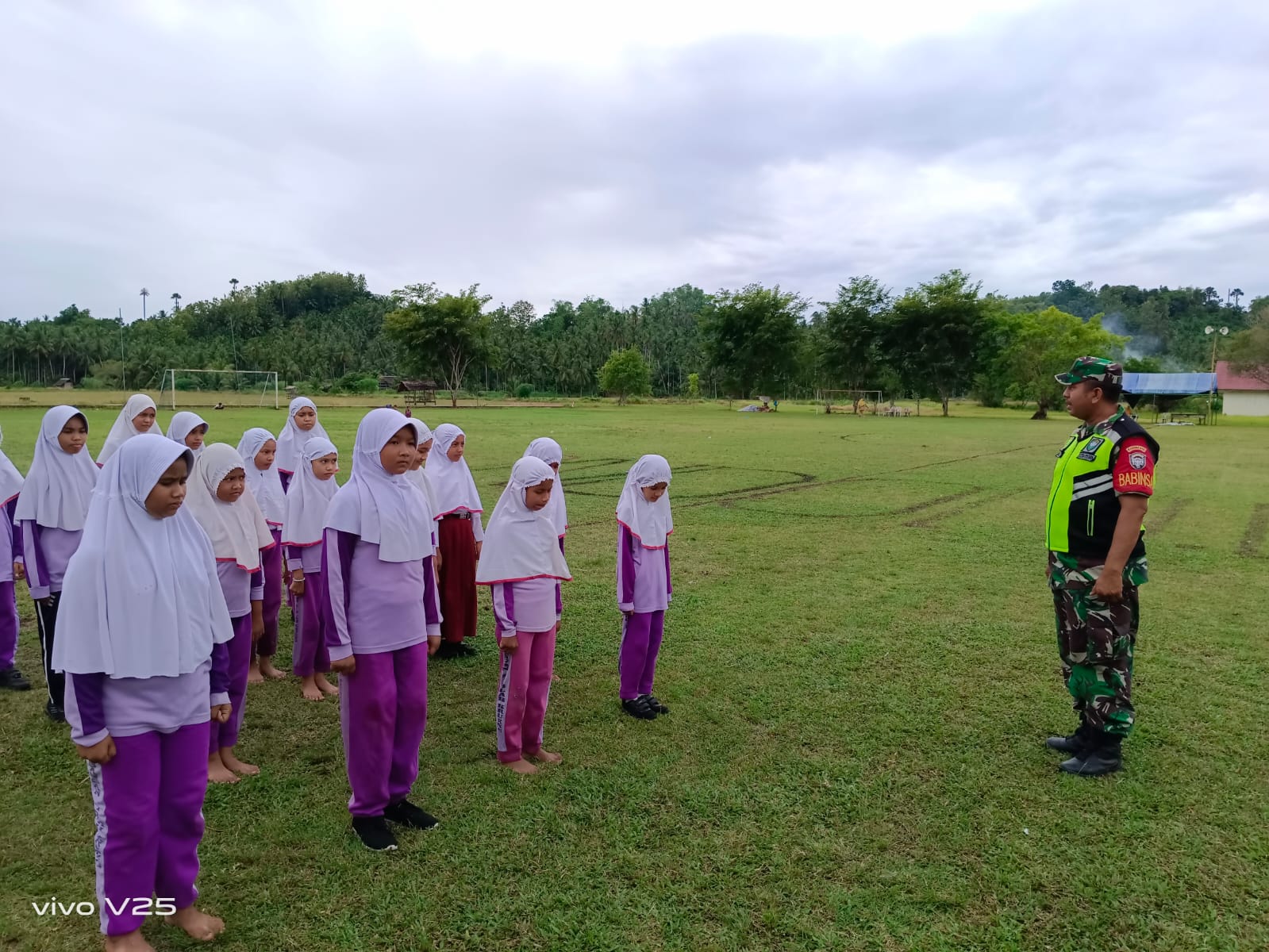 Dalam arahannya, Babinsa Serma Mulyadi menjelaskan, inilah langkah awal bagi anak-anak sekolah untuk mengenalkan kedisplinan dan suatu latihan awal untuk membela Negara.