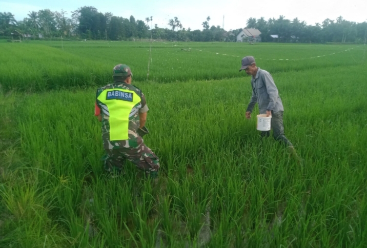 Tingkatkan Hasil Panen, Babinsa Bantu Petani Memupuk Tanaman Padi