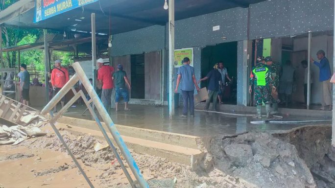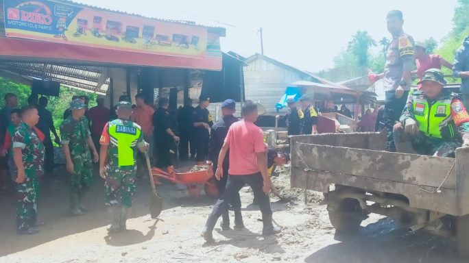 Dengan keterbatasan Alat untuk pembersihan lumpur, sampah dan Ranting-ranting kayu yang ada di badan jalan dan perumahan, Tim Gabungan TNI-POLRI Bersama masyarakat memerlukan waktu Full satu hari ini khusus pembersihan dan pembenahan ungkap Dandim.