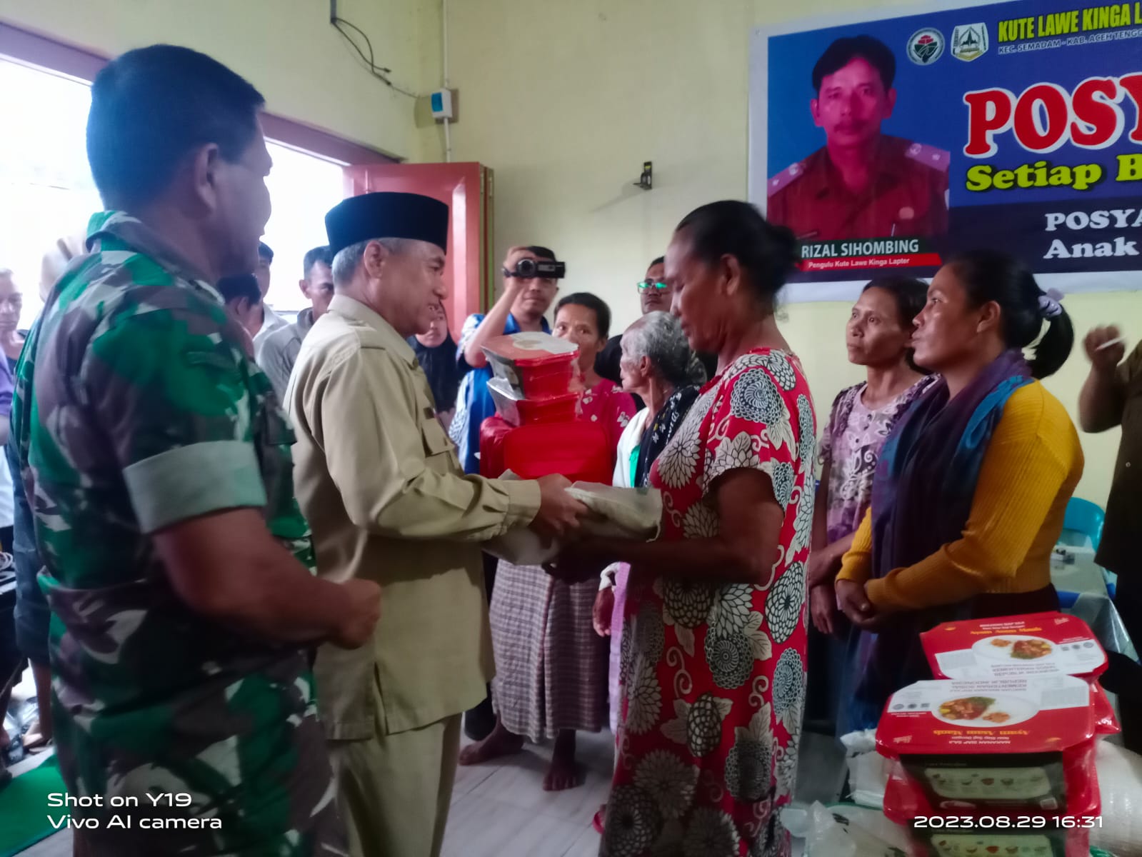 Kutacane – Danramil 0108-07/Semadam Lettu Inf Afifuddin bersama Dinas Sosial salurkan bantuan kepada warga terdampak banjir di wilayah kecamatan Semadam kabupaten Aceh Tenggara, Rabu (30/08/23).