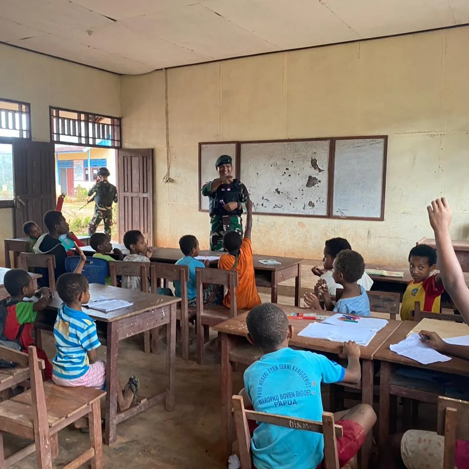 Pamtas Statis RI-PNG Yonif RK 111/KB Tingkatkan Mutu Pendidikan Di Wilayah Pedalaman Papua Selatan