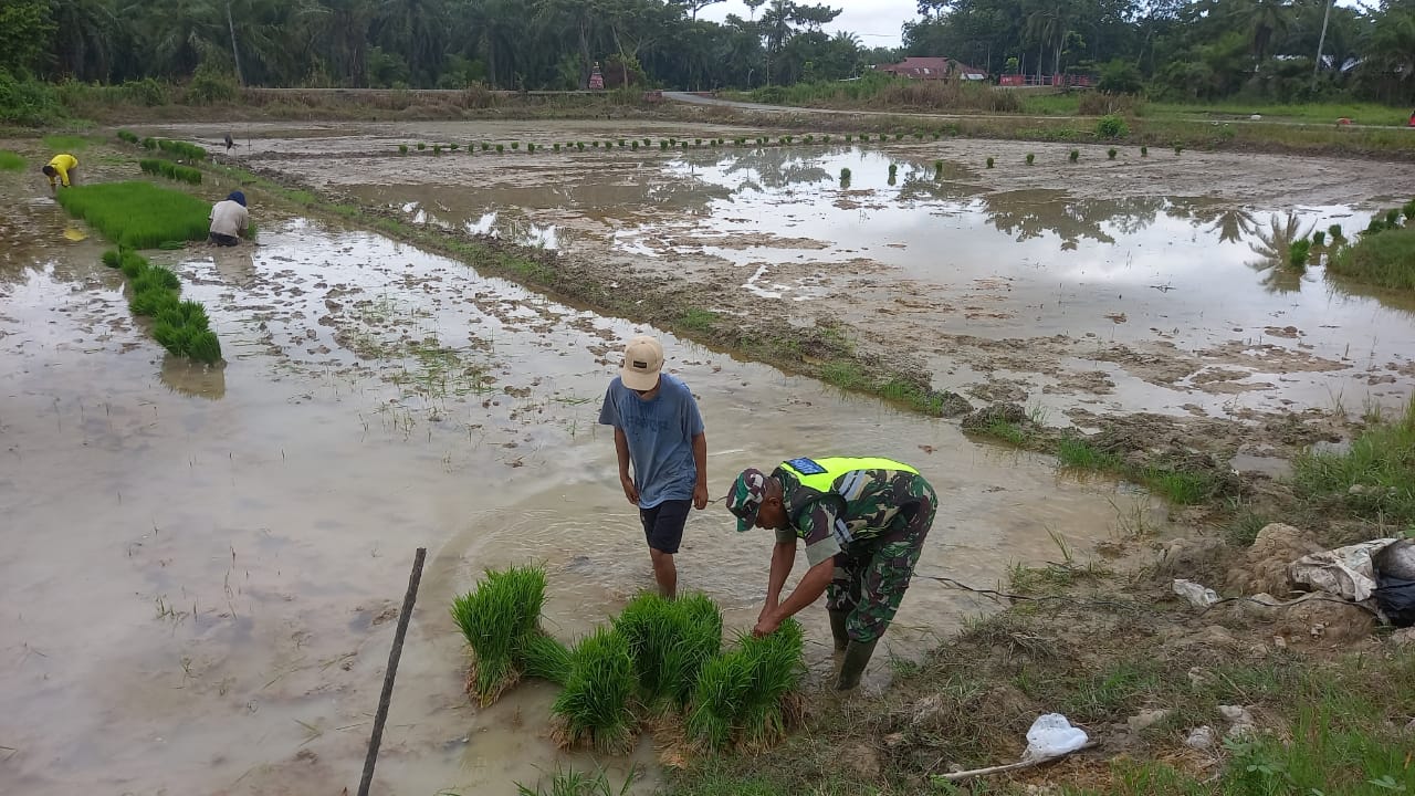 ACEH TAMIANG,MEDIA CENTER DIM 0117/ATAM- Pendampingan bidang pertanian terutama pesawahan merupakan upaya Koramil 03/Seruway dalam mendukung program ketahanan pangan wilayah tingkat Desa.