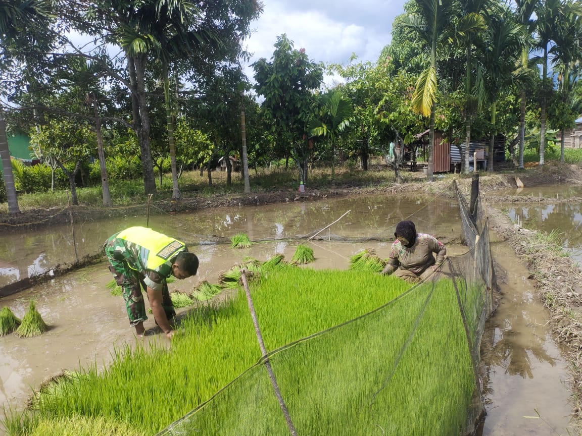 Wujudkan Swasembada Pangan Babinsa Bantu Petani Cabut Bibit Padi