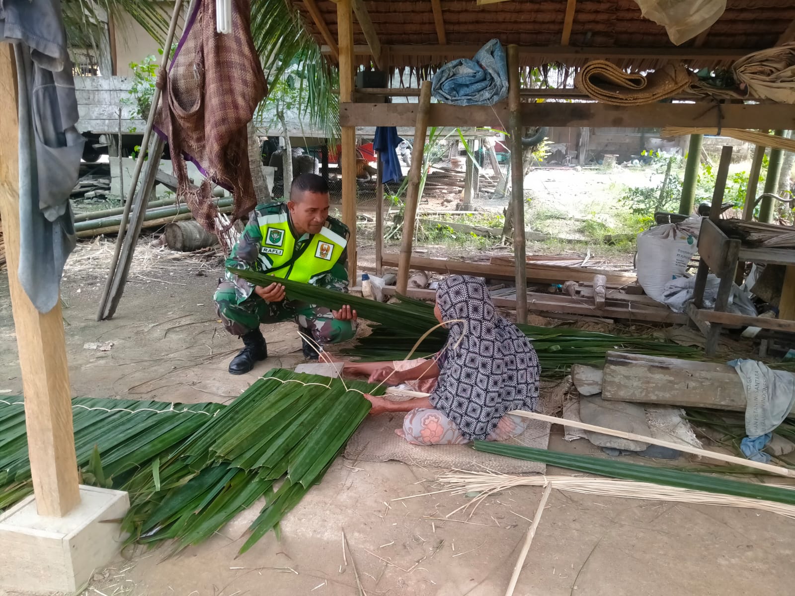 Babinsa dapat bertanya kepada penrajin mengenai proses pembuatan atap daun rupiah, Tujuannya adalah untuk saling bertukar informasi dan meningkatkan pemahaman tentang produk yang dihasilkan oleh penrajin.