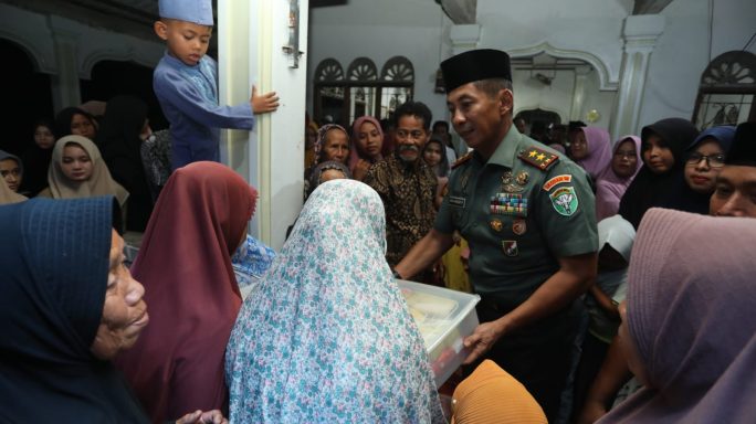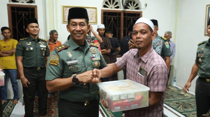 Selanjutnya Pangdam IM berkesempatan untuk memberikan bantuan Sembako kepada masyarakat dan memberikan bantuan untuk renovasi Mesjid Gampong Siron Blang.