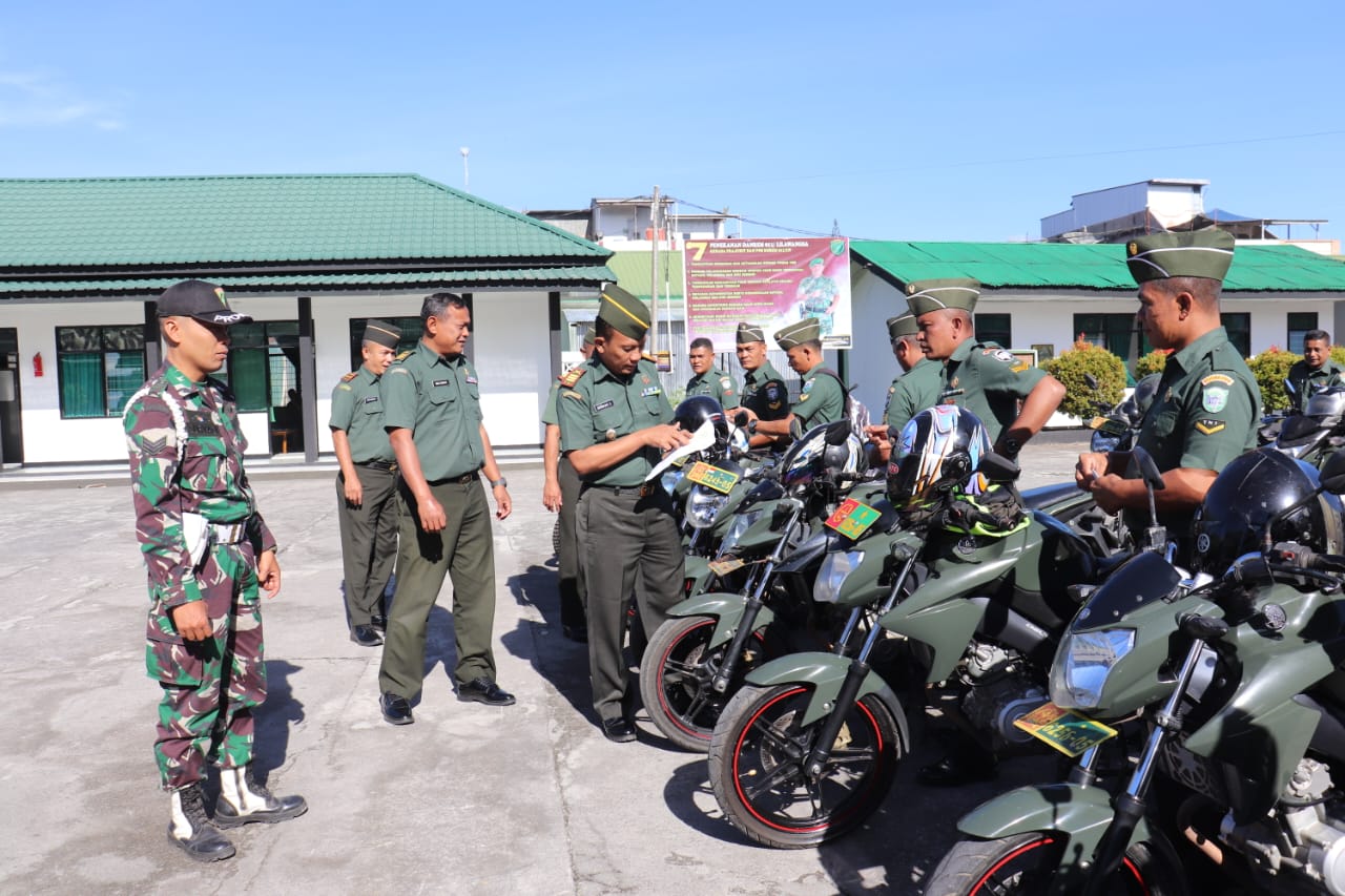 Tambahnya, Bagi prajurit yang memiliki kendaraan pribadi agar sesuaikan dengan protap baik itu kelengkapan surat-surat, memakai helm, memasang spion, plat nomor di lengkapi pada kendaraan serta wajib bagi prajurit memiliki SIM, jadilah panutan bagi masyarakat dalam mengendarai kendaraan bermotor di jalan,” ucapnya.