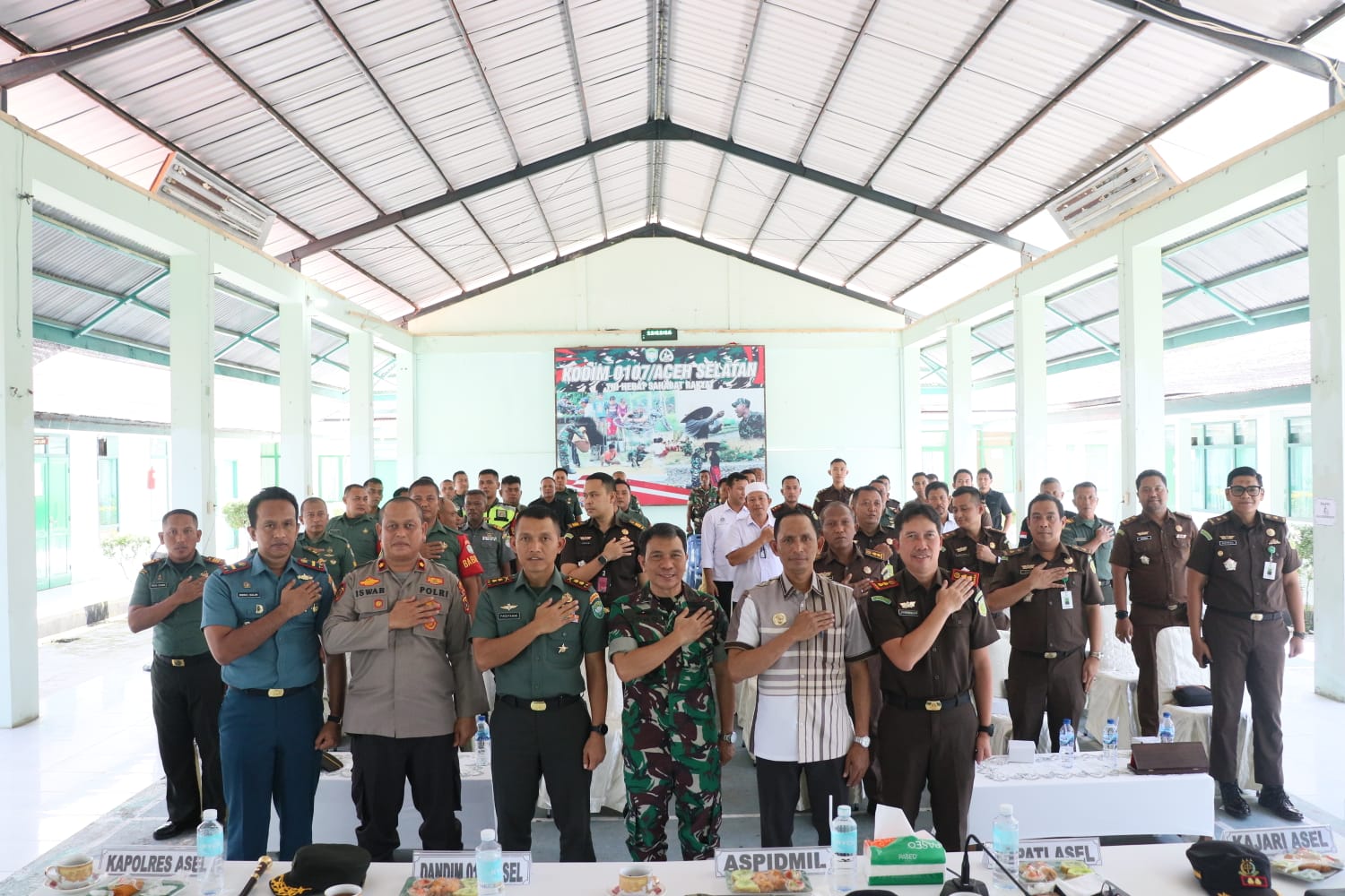 Komandan Kodim 0107/Aceh Selatan Letnan Kolonel Inf Faiq Fahmi pada kesempatan menyambut kedatangan Aspidmil Kajati Aceh dan romobongan menyampaikan terimakasih dan selamat datang di Kodim 0107/Aceh Selatan.