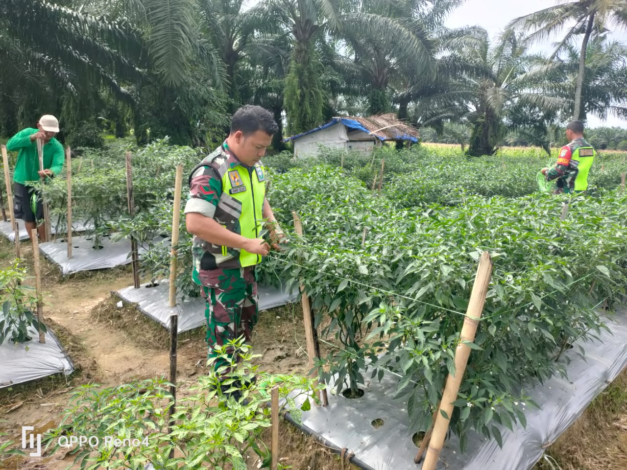 Babinsa Laksanakan Pendampingan Kepada Petani Pasang Tali Cabe Merah,