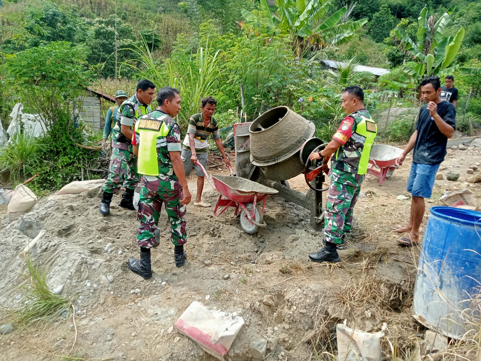 Serka Arden menyampaikan guna memudahkan aktivitas masyarakat,saat melintas Babinsa bersama yang lain ikut membantu pelaksanaan kegiatan pengecoran jalan (rabat beton) di desa binaan ini. Kerja Bakti TNI bersama Masyarakat merupakan peran Komando kewilayahan yang memiliki fungsi Pembinaan Teritorial yang didalamnya menyangkut pembinaan wilayah, sebagai fungsi Pembinaan Babinsa bersama masyarakat.ujarnya.