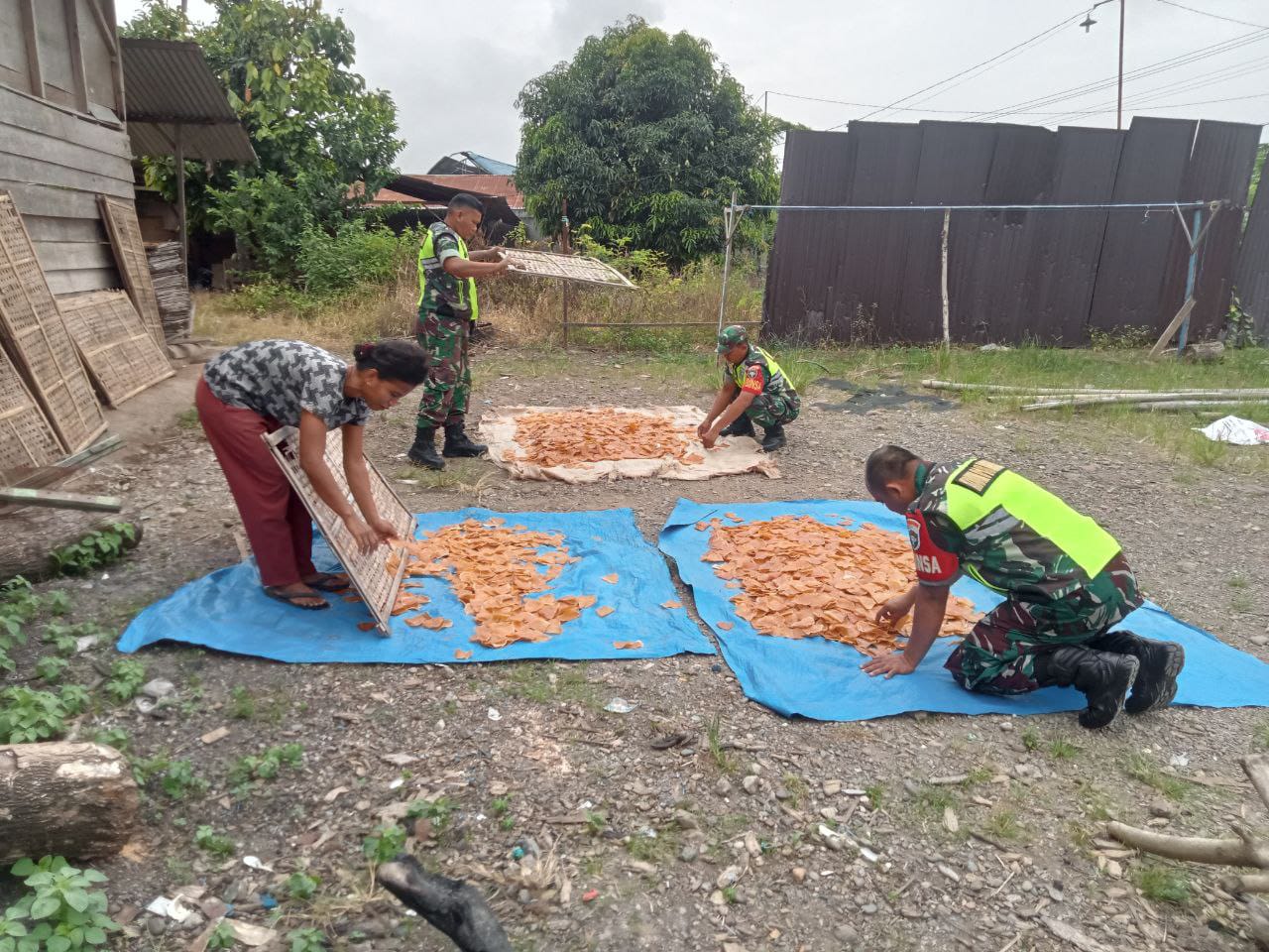 Cara kami membantu mendukung ekonomi warga dengan cara membantu mereka, sehingga kedatangan Babinsa dapat memberikan motivasi bagi warga binaan, harapan Babinsa kepada pemilik usaha agar dalam mengunakan bahan bahan pembuat kerupuk harus bahan yang baik sehingga dapat di konsumsi oleh langganan dengan baik dan tetap menjaga kebersihan disekitar usahanya” tutur Sertu Ayat