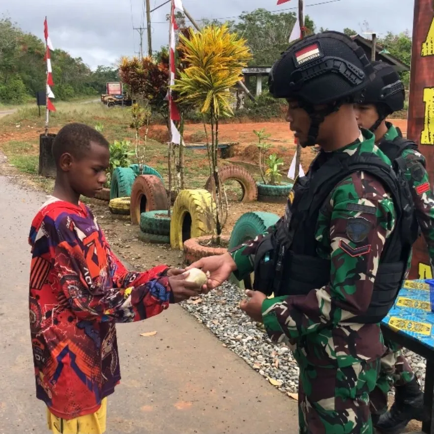 Anggota Satgas Pamtas RI-PNG dari Pos Umap melaksanakan kegiatan Binter diseputaran kampung binaan dengan membawa pakaian layak pakai untuk dibagi bagikan kepada masyarakat yang membutuhkan, dalam kegiatan minggu berkah,