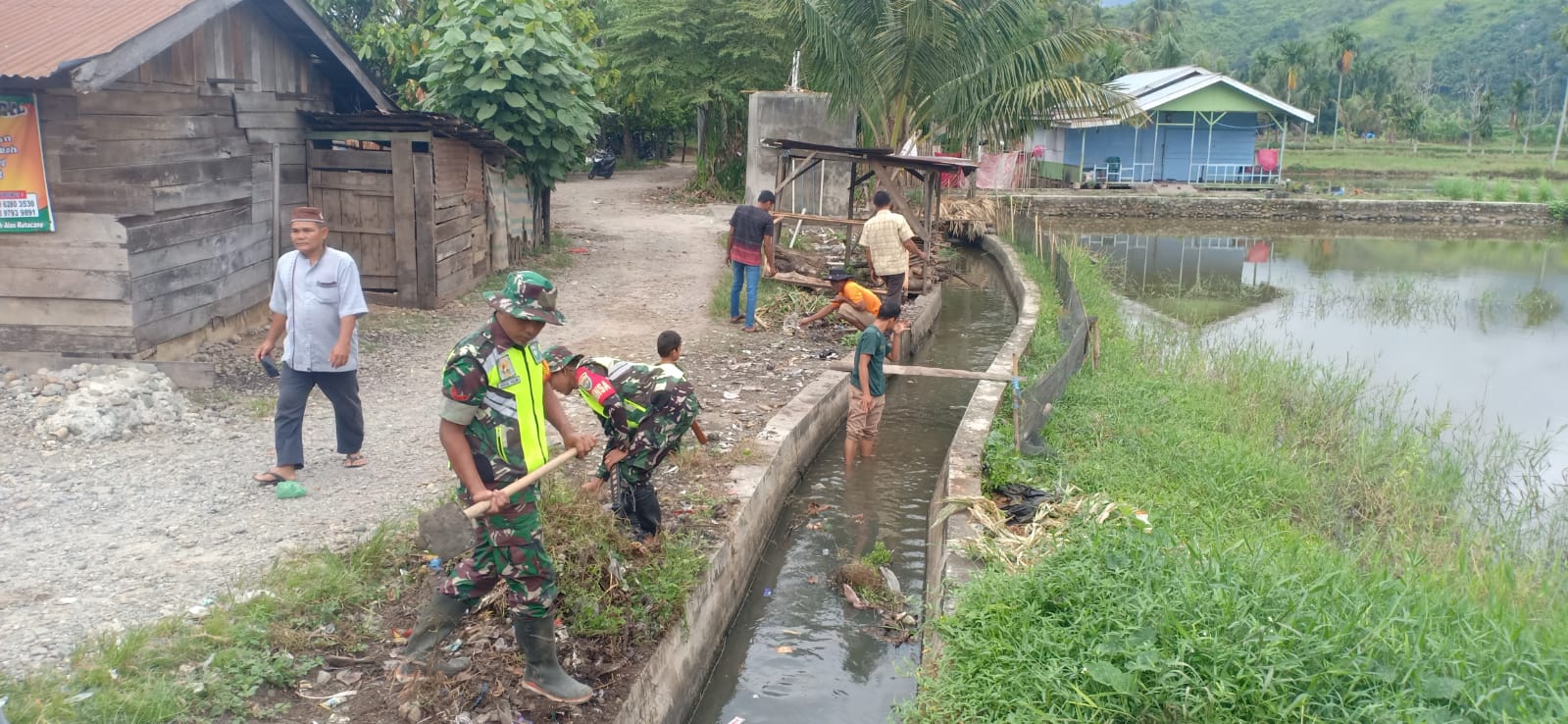 Kutacane – Babinsa Posramil Tanoh Alas Serda Dimas fahrijal jajaran Kodim 0108/Agara melaksanakan kerja bhakti bersama warga masyarakat membersihkan parit di desa Rumah Luar kecamatan Tanoh Alas Kabupaten Aceh Tenggara, Senin (18/09/23)