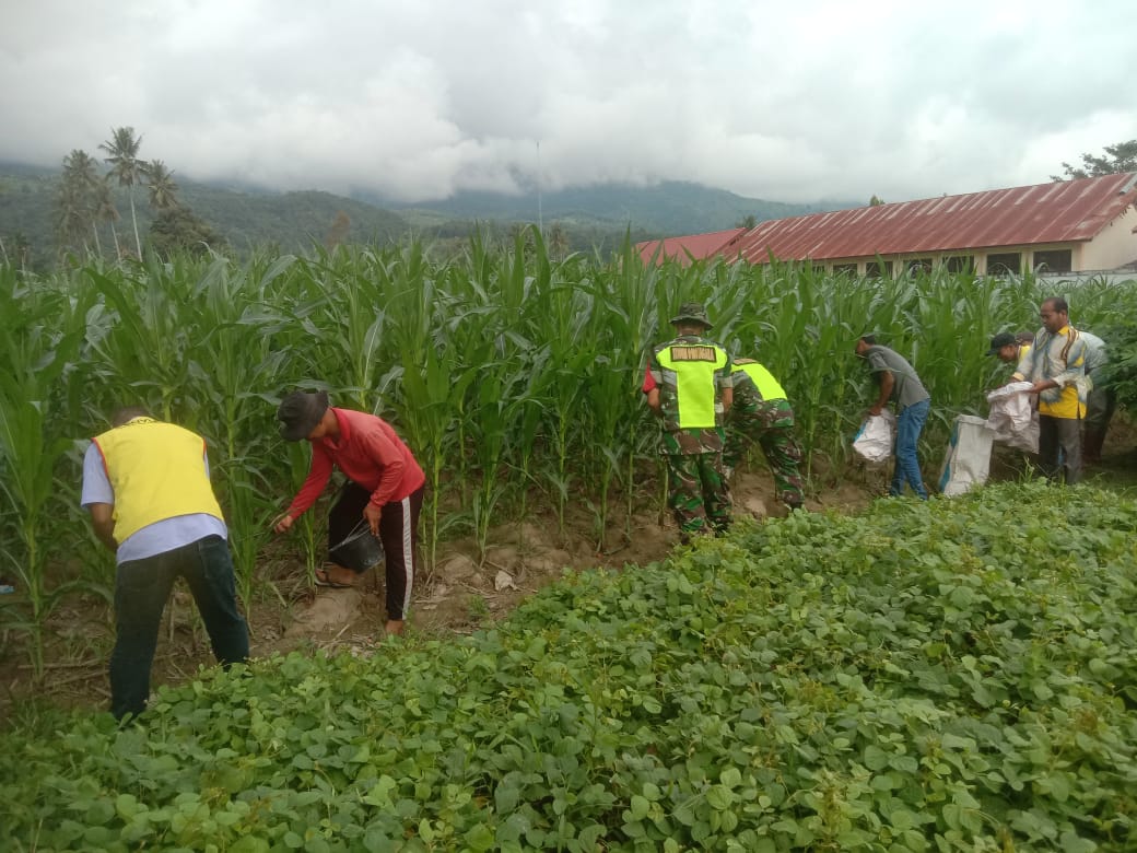 Berbagai bentuk upaya untuk peningkatan ketahanan pangan dilakukan oleh jajaran TNI. Para jajaran membantu para petani melakukan pemupukan tanaman jagung di desa binaan masing-masing.