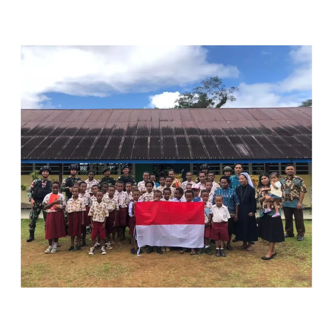 Boven Digoel. Satgas Pamtas RI – PNG Yonif 111/KB selain tugas pokok menjaga sepanjang wilayah perbatasan dibawah Kolakops Korem 174/ATW Satgas juga mendukung pemerintah daerah dalam hal pendidikan dengan Program Kampung Pancasila di Kab.Boven Digoel Papua Selatan, Selasa (19/09/2023)