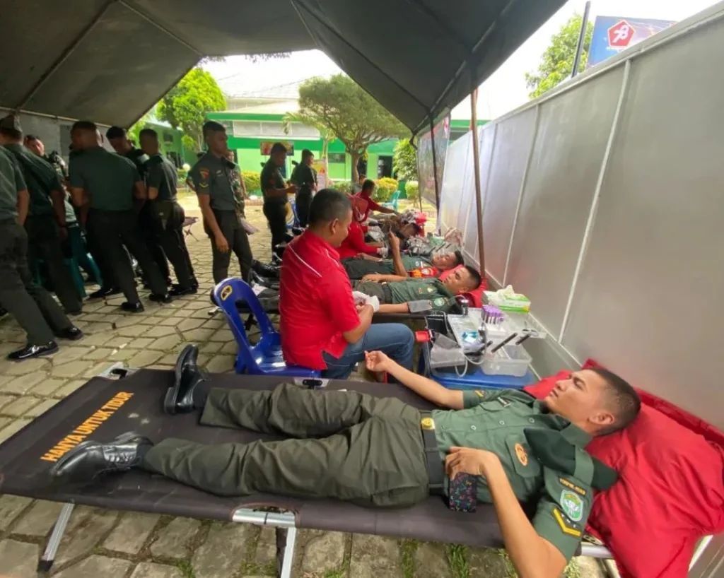 Dalam rangka menyambut Hari Ulang Tahun (HUT) ke-78 TNI dan memenuhi kebutuhan ketersediaan darah Palang Merah Indonesia (PMI), Prajurit Denma Brigif 25/Siwah melaksanakan kegiatan sosial donor darah di Rumah Sakit Kesrem TNI AD Lhokseumawe, Banda Sakti, Senin, 25/09/2023.