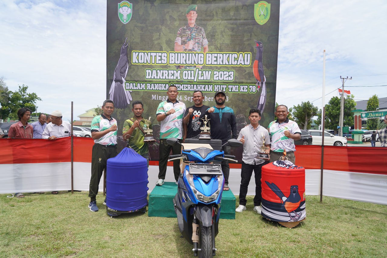 Lhokseumawe – Korem 011/LW menggelar Kontes dan lomba burung berkicau yang berlangsung di lapangan Jendral Sudirman Jalan Iskandar Muda Gampong Jawa Kecamatan Banda Sakti Kota Lhokseumawe,Minggu (24/09/2023). Ratusan pencinta burung kicau ikut meramaikan perlombaan tersebut.