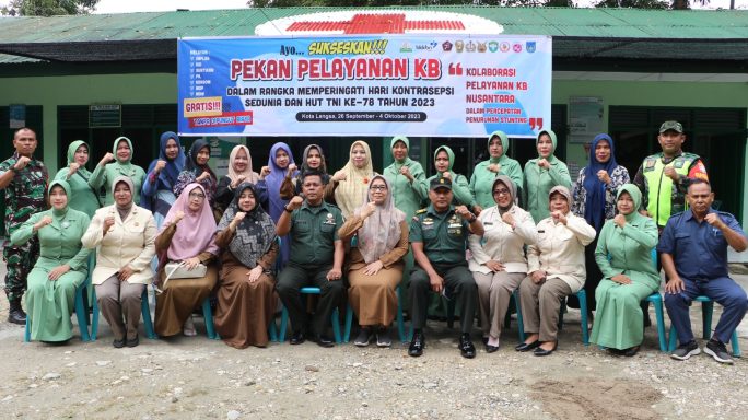 Langsa – Peringati HUT TNI ke 78 Tahun 2023 Kodim 0104/Atim bekerjasama dengan BKKBN Kota Langsa dan Aceh Timur gelar pekan pelayanan KB kesehatan bagi masyarakat.