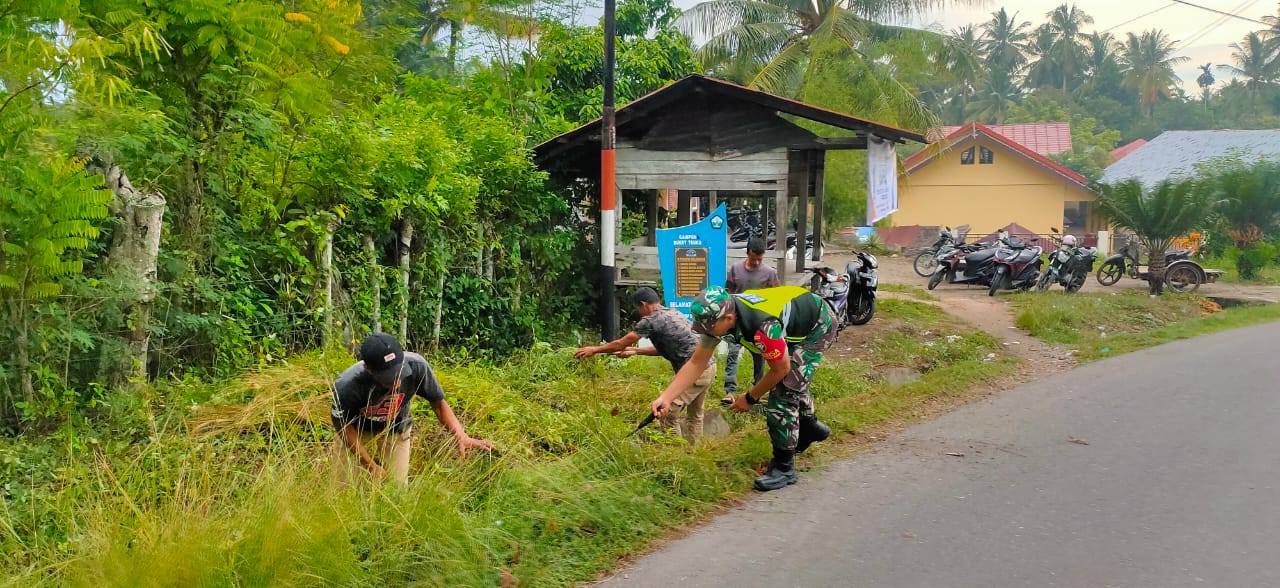 Bireuen-Sertu Bambang Sutikno Babinsa Koramil 01/Bireuen Kodim 0111/Bireuen melaksanakan gotong royong bersama warga masyarakat dalam rangka menyambut Maulid Nabi besar Muhammad SAW di desa Geulanggang Kulam Kec. Kota Juang Kab. Bireuen,Rabu (27/9/2023)