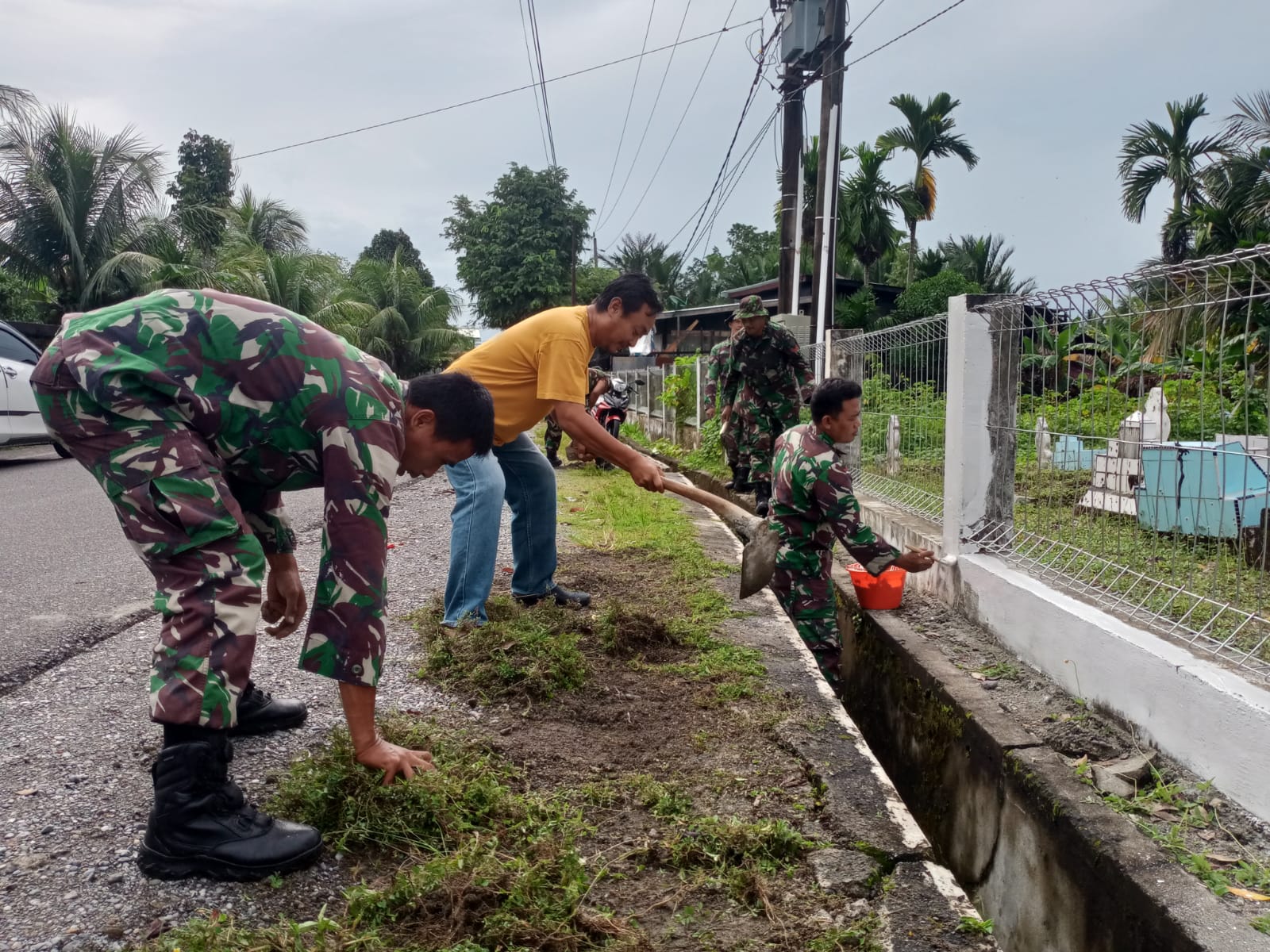 Di lokasi TMP, para Prajurit senantiasa penuh semangat membersihkan sampah – sampah dan rumput liar yang tumbuh di luar maupun dalam areal Pemakaman. Satu persatu Pusara dibersihkan dan Pagar TMP pun di Cat kembali oleh Prajurit, sehingga TMP kini tampak lebih asri.