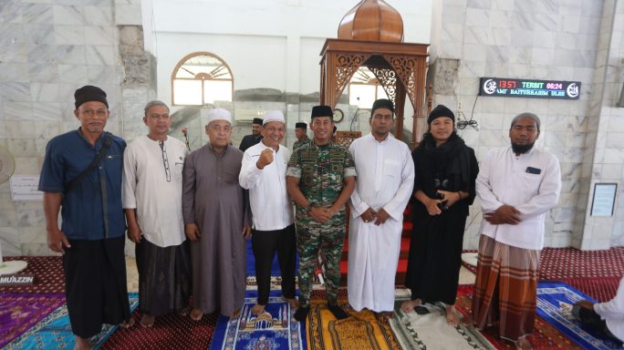 Disela-sela kesibukannya Pangdam IM menyempatkan bersilaturrahmi dan Shalat Jum’at bersama masyarakat di Mesjid bersejarah Masjid Baiturrahim Ulee Lheue.