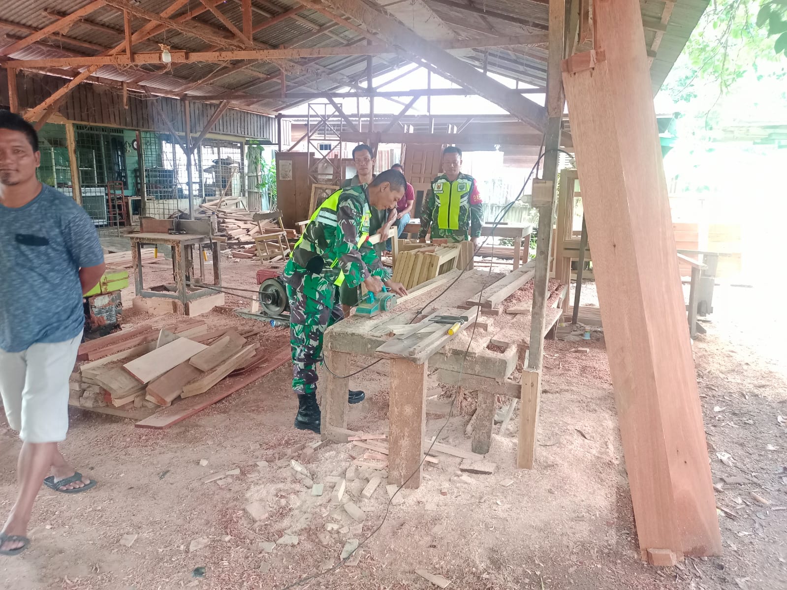 Kutacane – Babinsa Posramil Lawe Sumur Serka Afrijal jajaran Kodim 0108/Agara melaksanakan anjangsana ke pengrajin kayu milik bapak feri didesa terutung megara baru kecamatan lawe Sumur Kabupaten Aceh tenggara, Jumat (06/10/23).