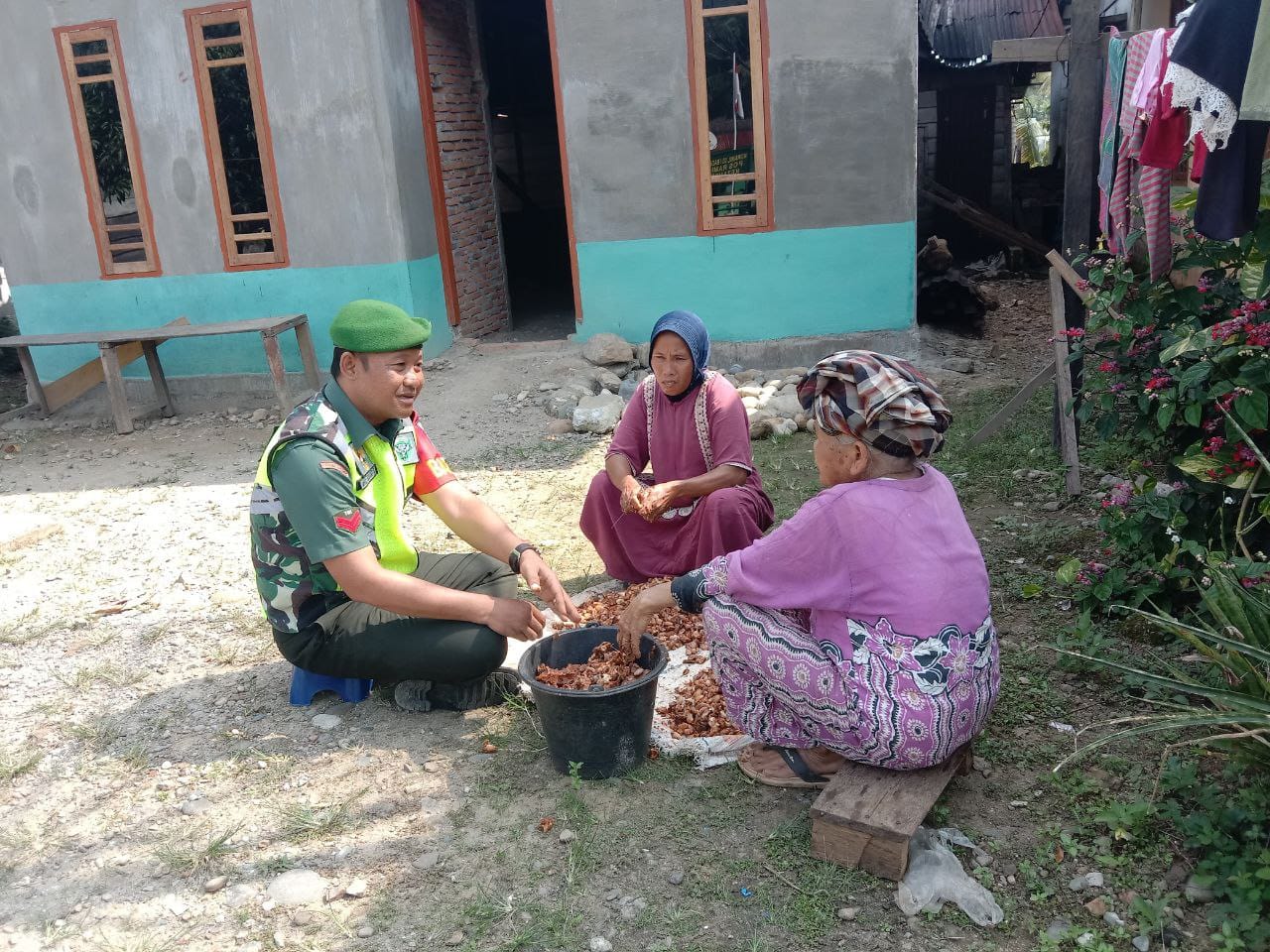 Dukung Petani Kakao, Babinsa Bantu Kupas Biji Secara Tradisional