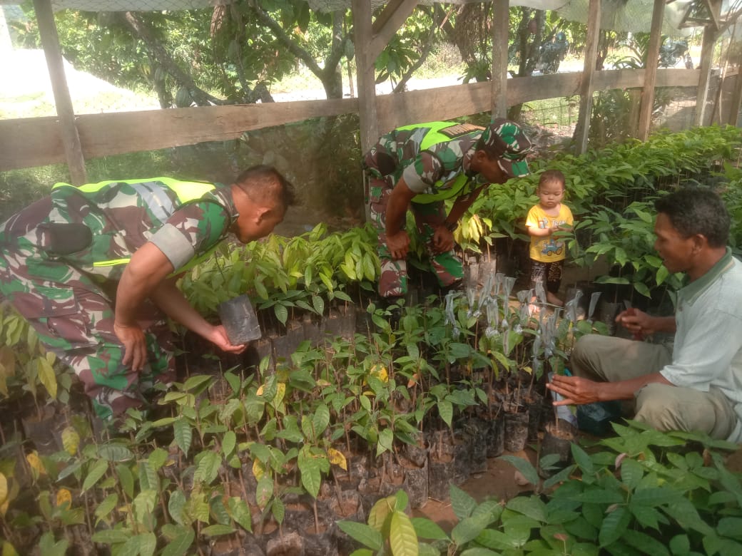 Sertu Nimun menjelaskan Melihat besarnya potensi yang ada untuk membantu dan meningkatkan taraf hidup dan perekonomian masyarakat, Babinsa bersama dengan masyarakat setempat melaksanakan pembibitan tanaman cokelat dengan sistem sambung pucuk yang nantinya akan ditanam.