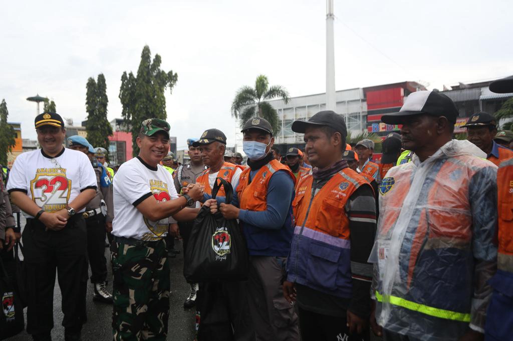 Dalam kegiatan ini, Kasdam IM dan Kapolda Aceh, membagikan 300 paket sembako kepada Juru Parkir, Petugas Masjid Raya, Abang Becak, dan Juga Driver Ojek Online.