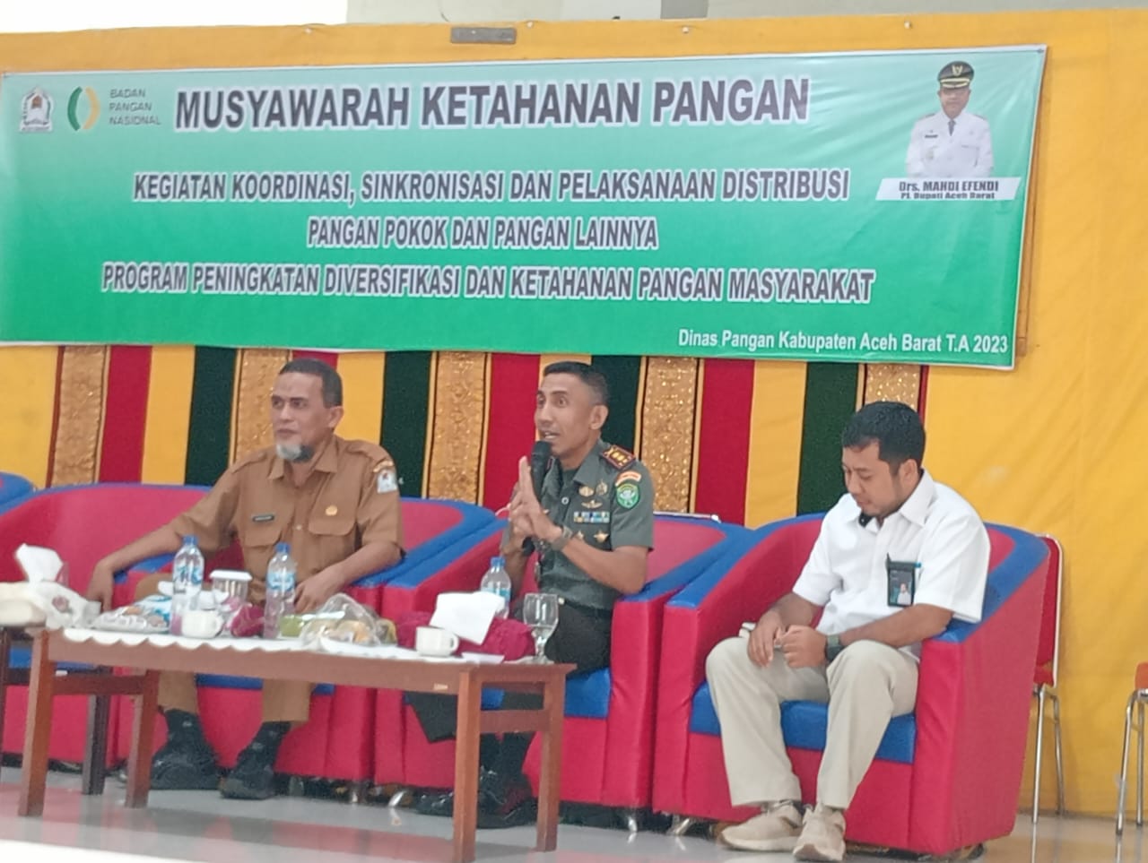 Program peningkatan diversifikasi dan Ketahanan Pangan masyarakat ini dimotori oleh Dinas Pangan Kabupaten Aceh Barat yang dalam forum diskusinya tampak dihadiri oleh Sekdakab Aceh Barat Marhaban, S.E., Dandim 0105/Abar Letkol Inf Muhammad Syafii Nasution, Plt. Kadis Pangan Aceh Barat Kamarlisnur, Kabid Distribusi Pangan Masti Hanis, S.P., dan unsur Forkopimda lainnya.