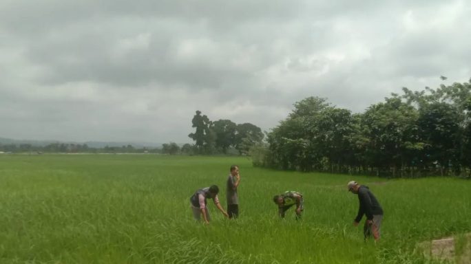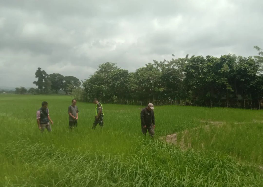 Simeulue – Serda Bahagia Babinsa Koramil 04/Salang bersama tim PPL Kecamatan Salang melalukan kegiatan pengecekan pertumbuhan padi milik kelompok tani di Blang Lafungan Desa Nasreuhe Kec. Salang, Kamis (02/11/2023).