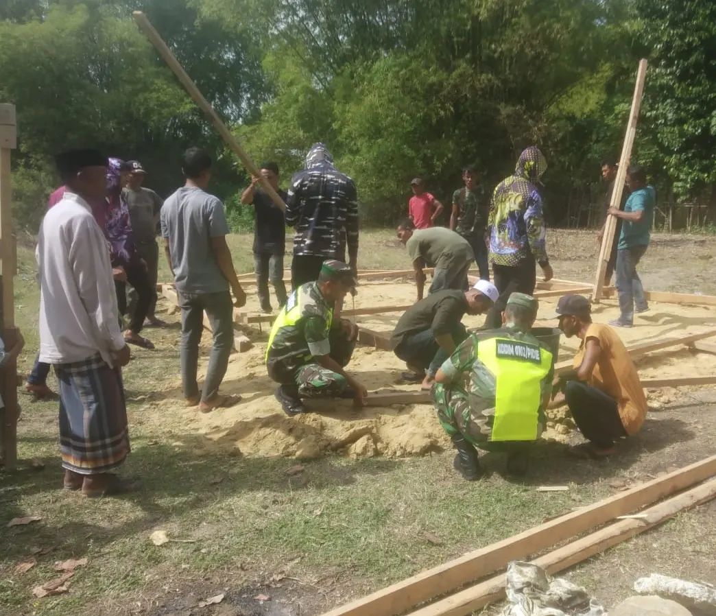 Kegiatan gotong royong ini berlangsung dengan penuh semangat, dimulai dari pembersihan lokasi hingga tahap awal pembangunan rumah. Babinsa Sertu Marhalim yang menjadi salah satu motor penggerak kegiatan ini menyampaikan pentingnya kolaborasi antara aparat keamanan, pemuda, dan masyarakat dalam membangun dan memperkuat ikatan sosial di desa.