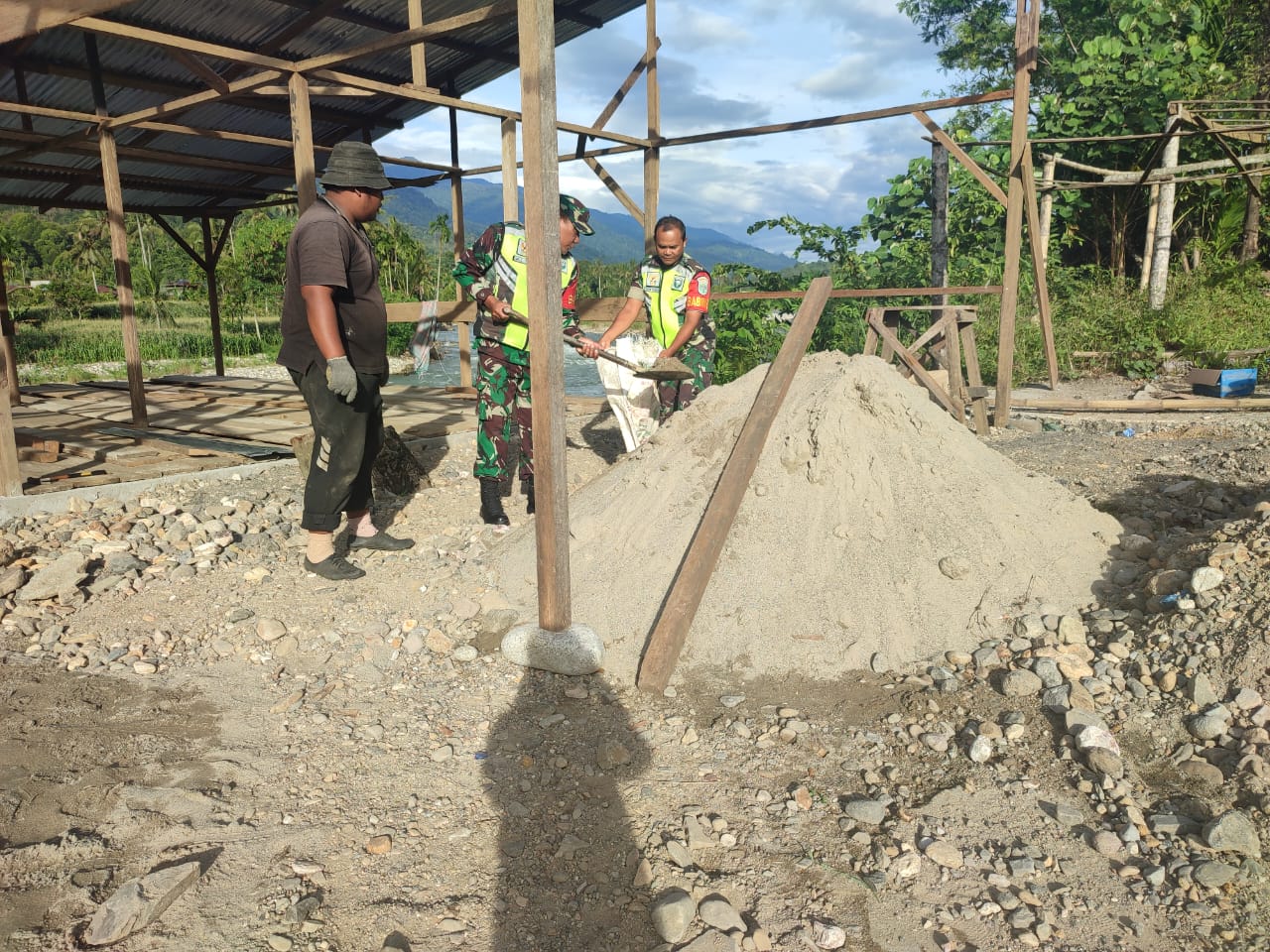 Kutacane – Babinsa posramil Ketambe Sertu Musliadi jajaran Kodim 0108/Agara membantu masyarakat membangun rumah milik bapak Saliman warga desa Jambur lak-lak kec Ketambe kab, Aceh Tenggara, Jumat (29/12/23).