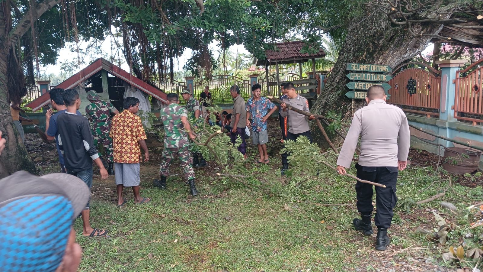 Pidie – Sebagai Bentuk kepedulian terhadap tempat ibadah dengan melaksanakan kegiatan *Karbak* (Karya Bakti) berupa gotong royong pembersihan halaman Menasah. Babinsa Koramil 0102/23 Bate Serma Jaya Sampurna bersama-sama dengan masyarakat Desa Pulo Tukok Kecamatan Batee Kabupaten Pidie, Jum’at (29/12/2023)