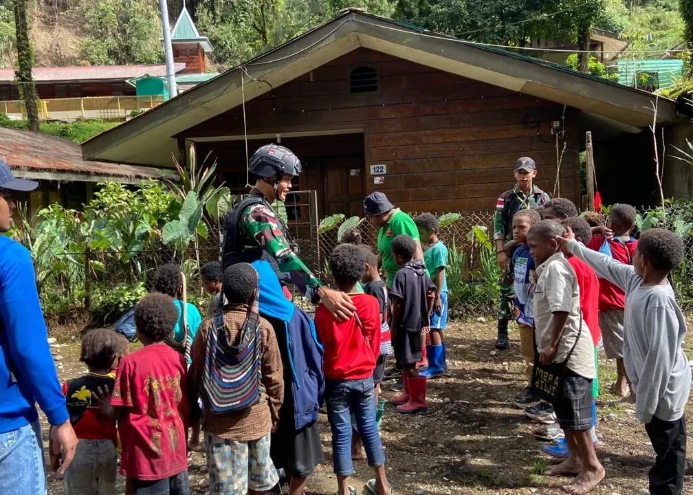 Dalam rangka mendukung program pemerintah dalam mencerdaskan generasi muda, Satgas Pam Obvitnas PT. Freeport Indonesia Yonif 116/Garda Samudra melalui Pos Banti melaksanakan kegiatan mengajar anak-anak di Desa Banti 1,Banti 2 dan Desa Takabera, Distrik Tembagapura, Kab. Mimika, Papua sekaligus berinteraksi dengan masyarakat, Kamis (01/02/2024).