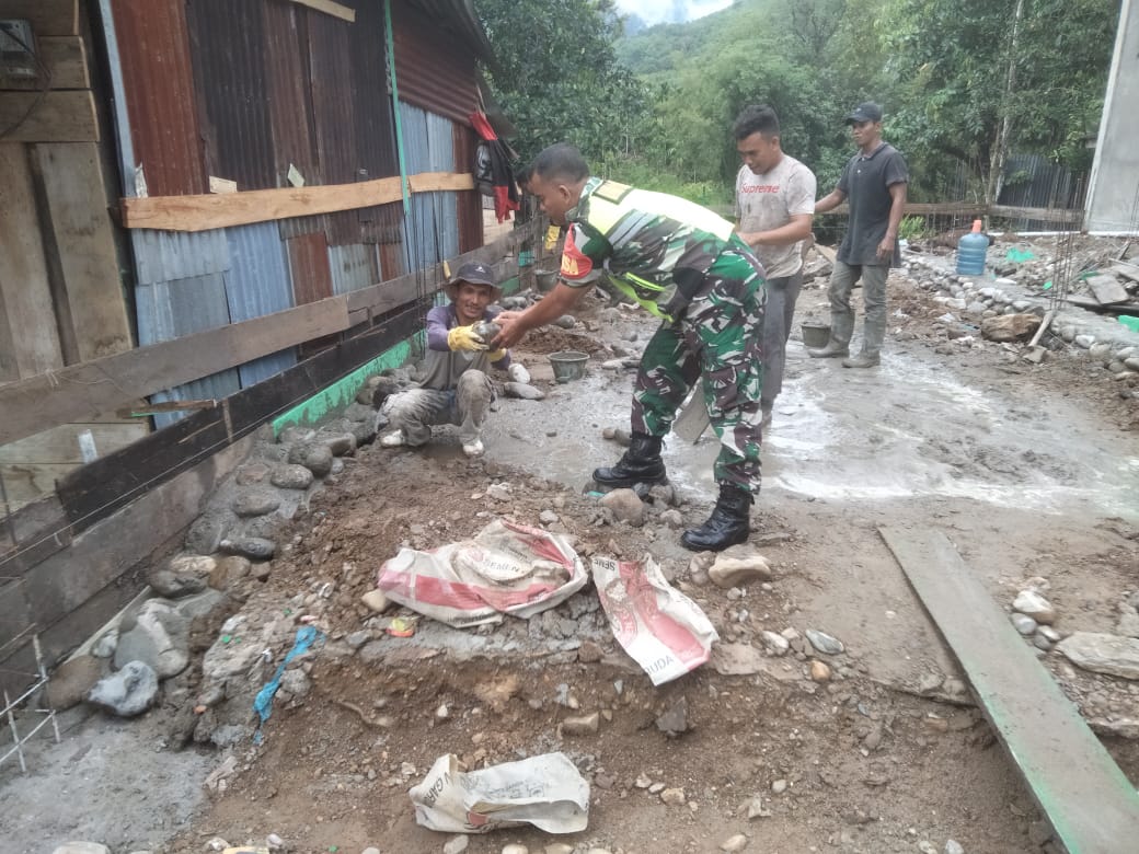 Kutacane – Babinsa Posramil ketambe Sertu Halamudin jajaran Kodim 0108/Agara membantu warga mitra karib dalam pembangunan rumah milik bapak basri di desa jambur lak-lak kec ketambe Kab, Aceh Tenggara, Senin (13/05/24).
