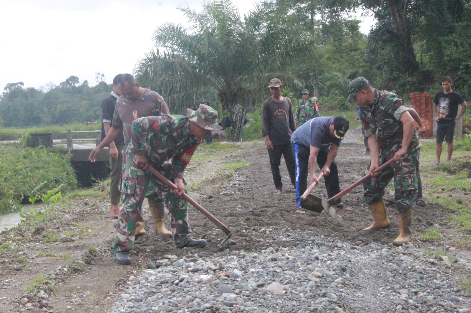Nagan Raya, Disela-sela kesibukan tugas program Tentara Manunggal Masuk Desa (TMMD) Reguler ke-120 Tahun 2024, tim satgas TMMD dipimpin langsung oleh Dandim 0116/Nagan Raya Letkol Inf Fairuzzabadi, S.H. pihaknya bersama masyarakat dan perangkat Desa Kota Baro Blang Muling dan Desa Alue Gajah, Kecamatan Suka Makmue Kabupaten Nagan Raya, melaksanakan karya bakti meratakan Pasir di lokasi TMMD dan membersihkan Ranting-Ranting Pohon di dekat Irigasi, Jumat (17/05/2024).