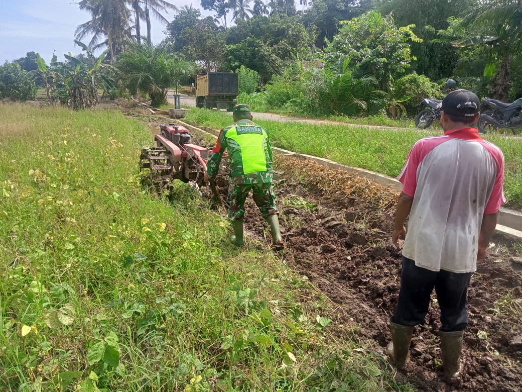 Membantu membajak lahan sawah, merupakan wujud pelaksanaan Babinsa dalam melakukan pendampingan kepada petani di wilayah binaan untuk mempercepat proses pengolahan dan tanam padi dan peningkatkan hasil produktivitas tanaman padi.